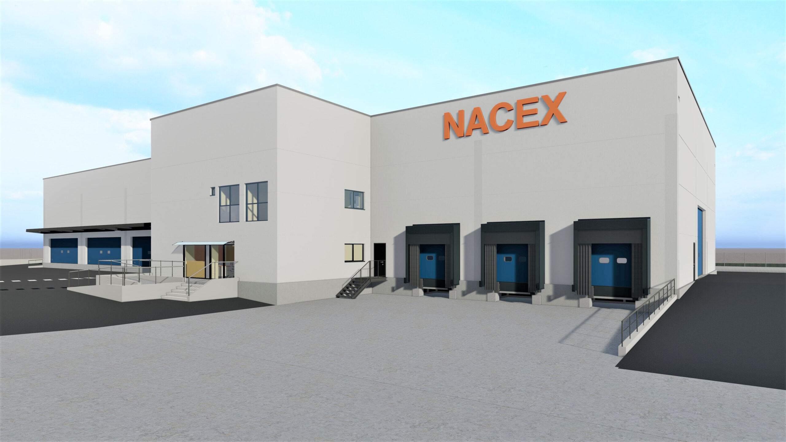 Edificio industrial de una planta para la zona logística y de dos plantas en la zona administrativa.